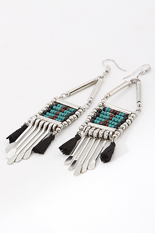 - *Tribal Drop Earrings with Tassels Details 6BAF1 *1 X 4" approx.