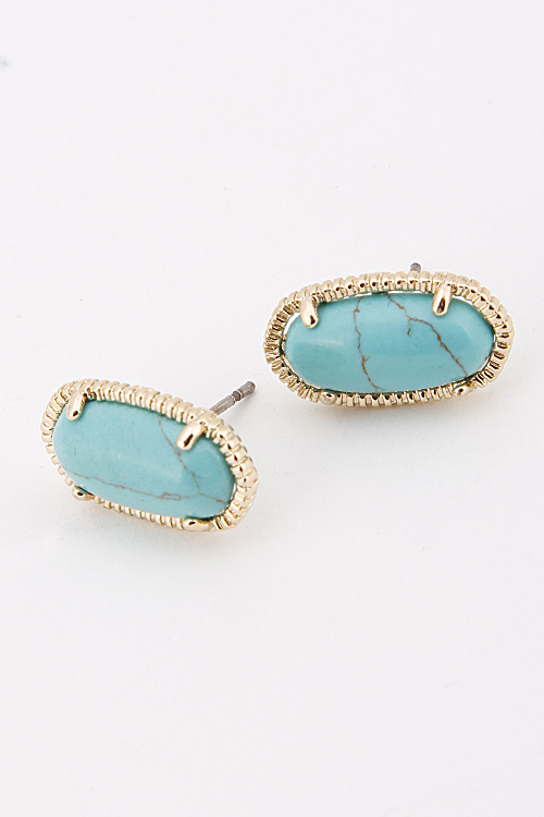 - * Oval Stone Earrings 6ACG9 * 0.4 x 0.6" approx.