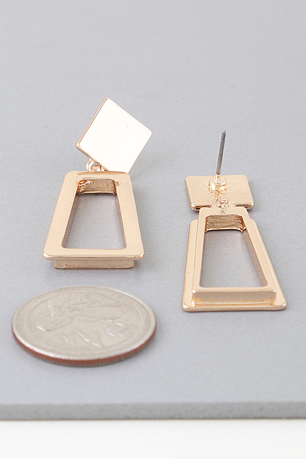 - * Embrace contemporary chic with "Modern Geometric Frame Drop Earrings." These exquisite drop earrings from H&D accessories showcase a bold geometric frame in a beautiful tone. Perfect for the fashion-forward individual, they add a touch of sophistication and flair to any ensemble, making them a must-have addition to your jewelry collection.