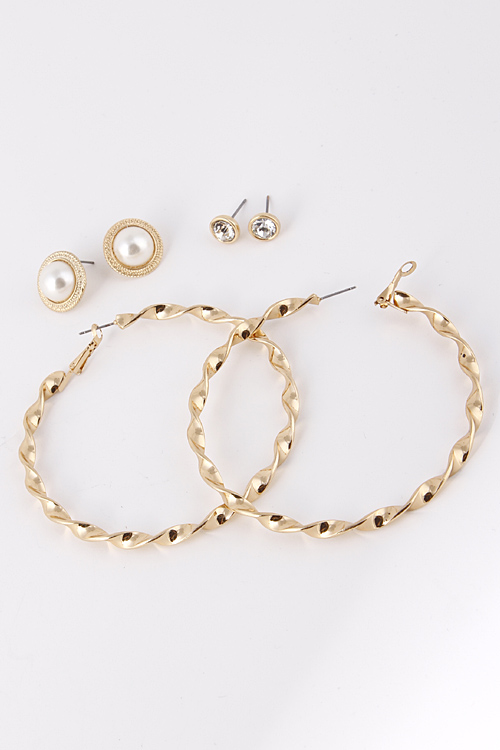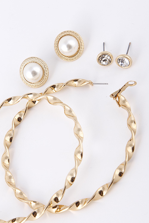 - * Swirled Hoop Pearl And Rhinestone Stud Set Earring 5DBE4 * .3 x .3/ .7 x .7/ 3.2 x 3.2" approx.