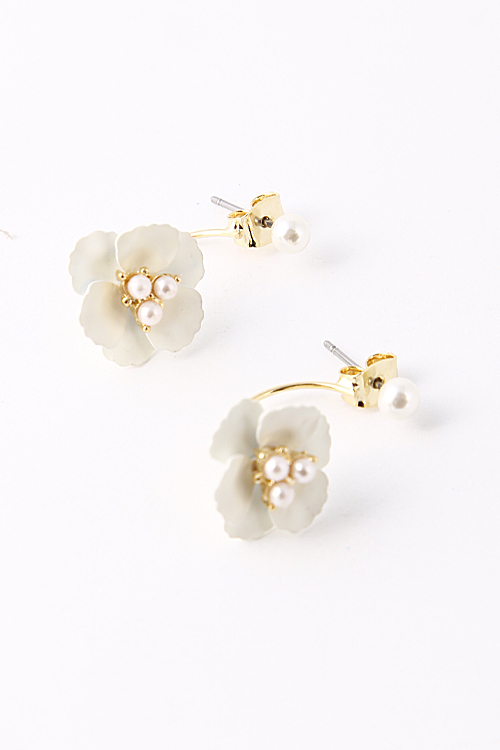 - * Triangle Pearl Flower Dangle Earring 5ECI3 * 0.5 x 0.5" approx.