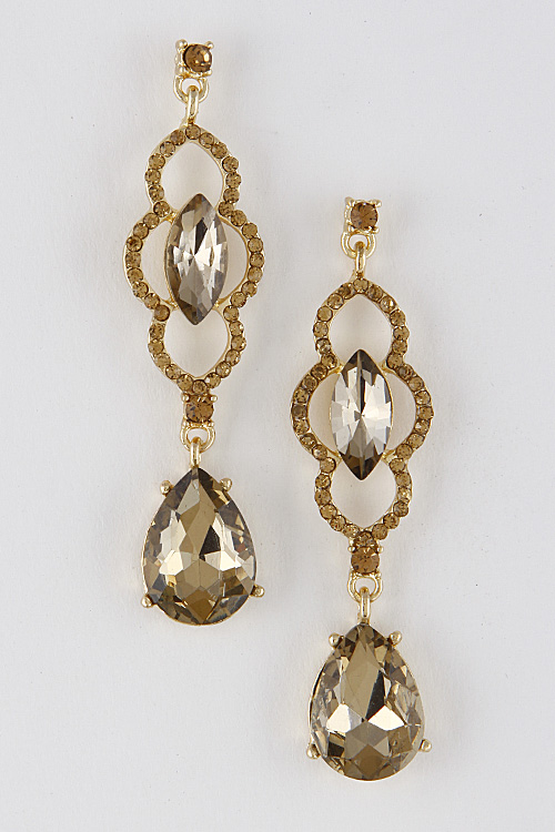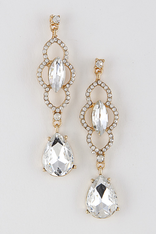 - * Rhinestone Tear Drop Earrings 6KAB5 * 0.8 X 2.8" approx.