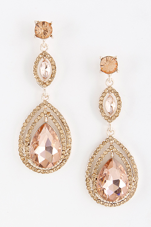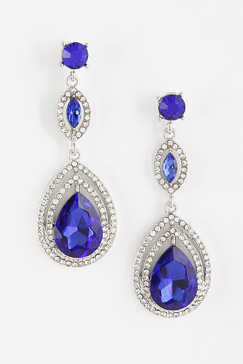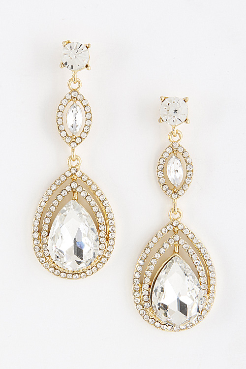 - * Long Drop Rhinestone Tear Drop Earrings 6FAG8 * 0.8 x 2.2" approx