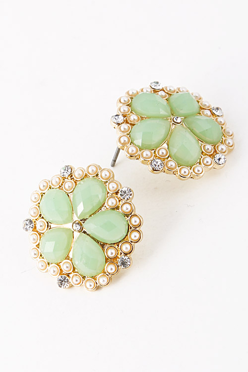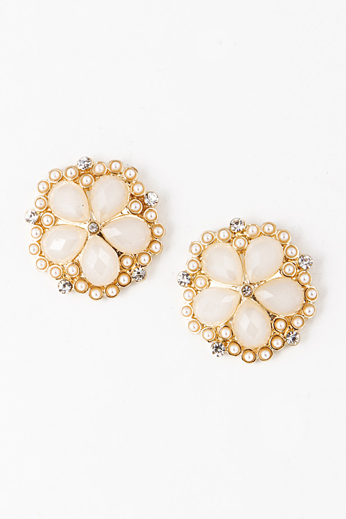 - * Pearl Rimmed Floral Stud Earring 5BBC1 * .9 x .9" approx.