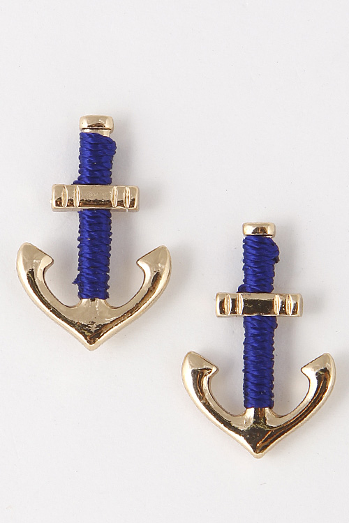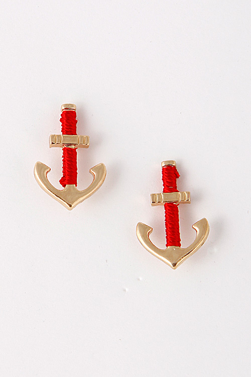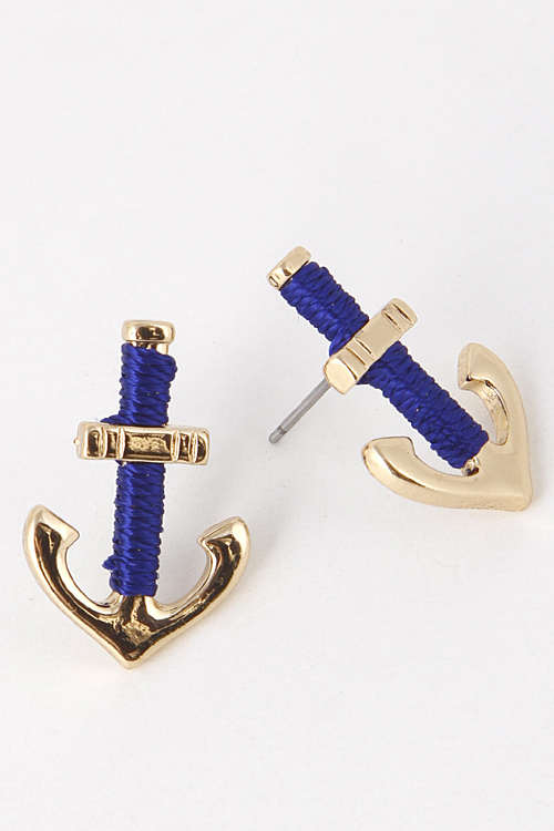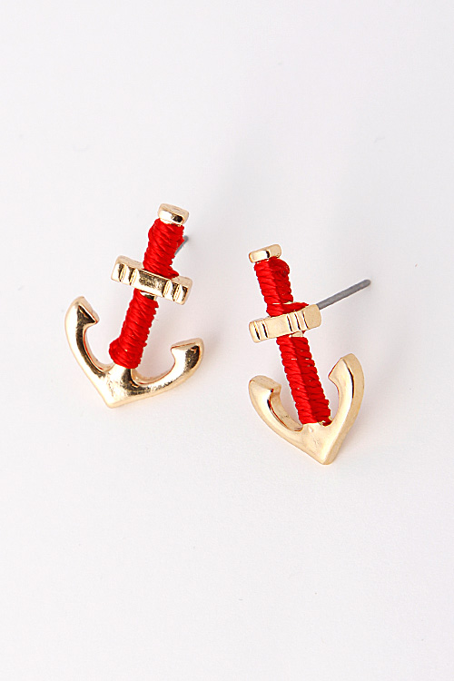 - * Yarn Wrapped Anchor Cutout Stud Earring 5EAI10 * .6 x .8" approx.