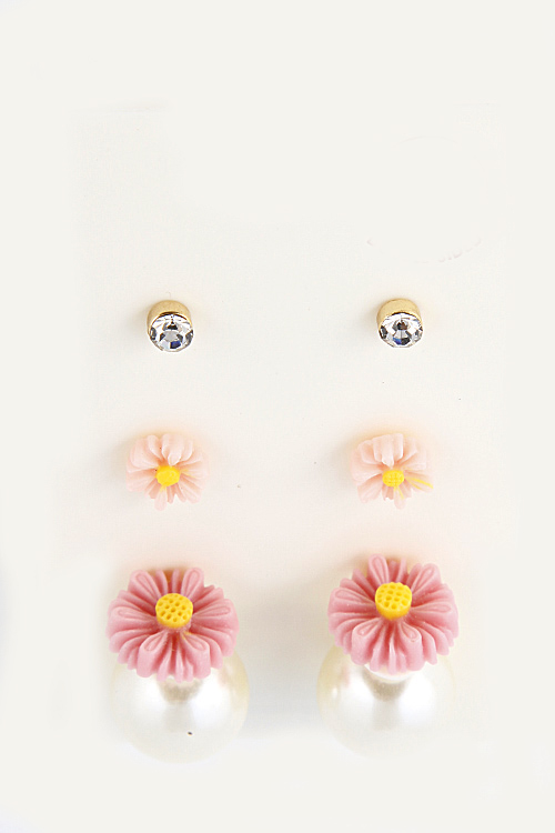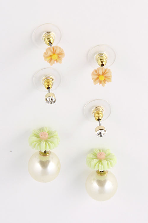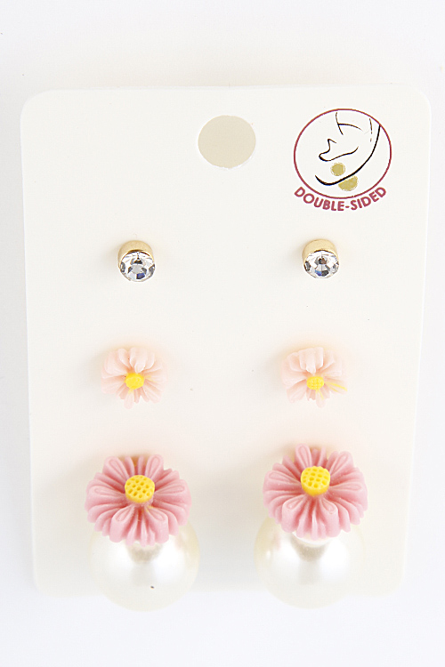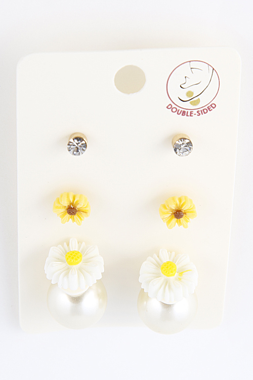 - * Daisy Floral Cut Pearl End Stud Set Earring 5FBH1 * .1 x .75" approx.