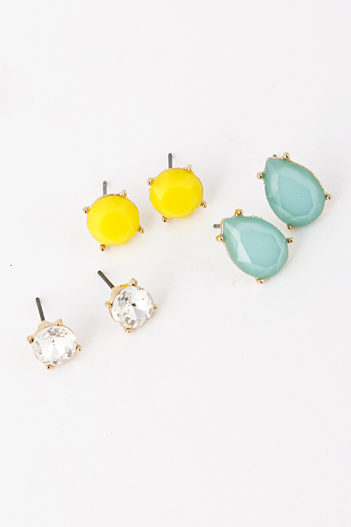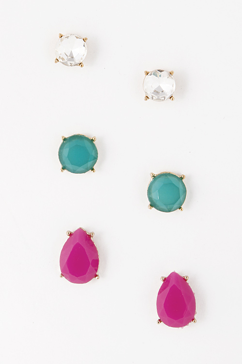 - * Three Set Candy Jewel Stud Earring 5EAE7 * .3 x .3/ .4 x .4/ .4 x .5" approx.