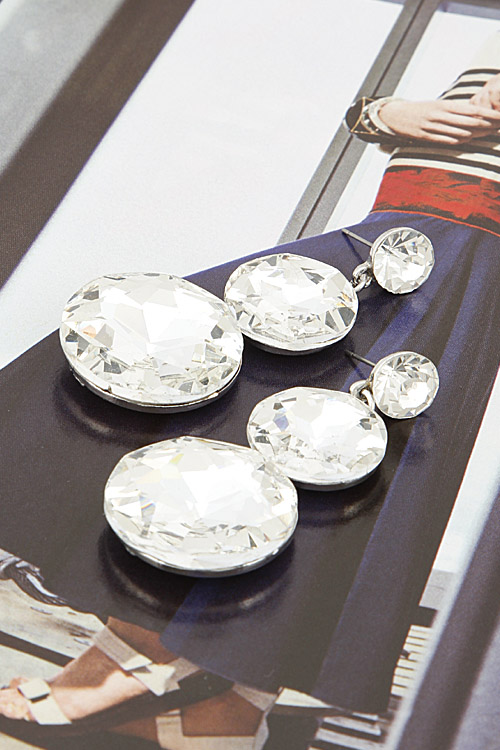 - *Three Rhinestone Drop Earrings 5JBC10 * 2.5x1" approx.