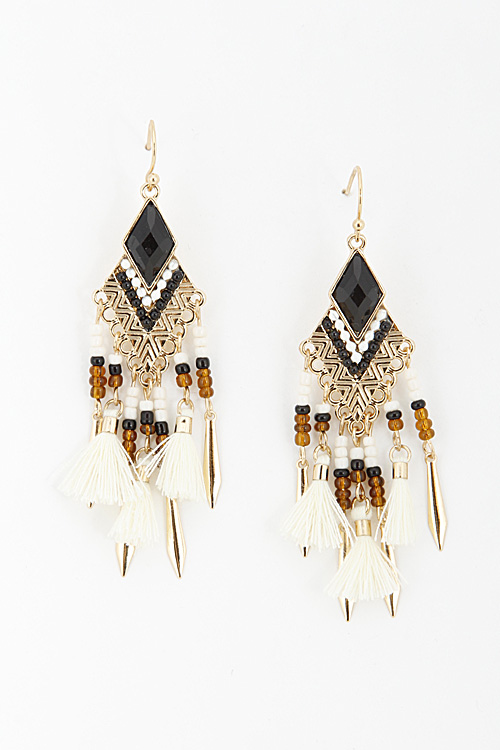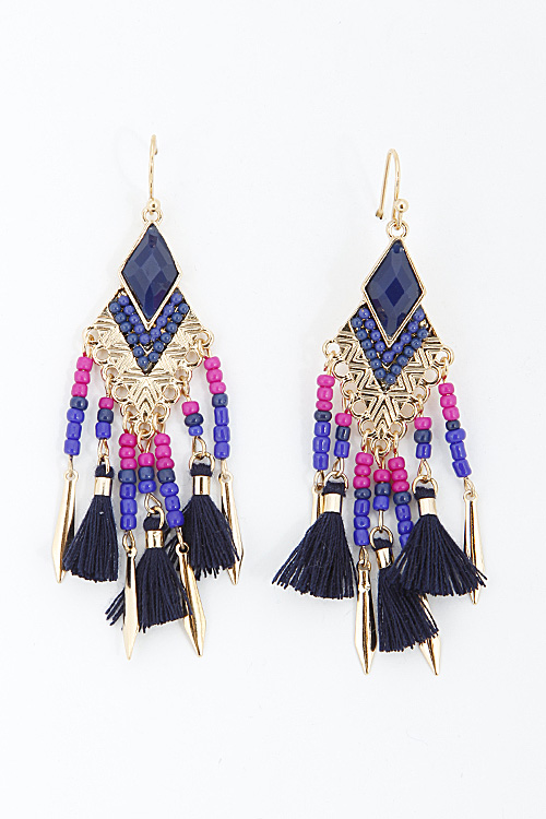 - *Diamond Shape with Tribal Design Earring 5JBC6 * 2.8" approx.