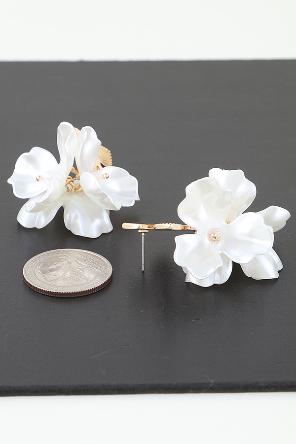 - * These are the Blossoming Flower Drop Earrings from H&D Accessories. Each earring is a beautiful composition of a delicate gold - toned flower motif at the top, elegantly cascading into a cluster of white, petal - like elements that mimic a blooming flower. The intricate detailing and the combination of metallic and soft textures create a charming and feminine look.