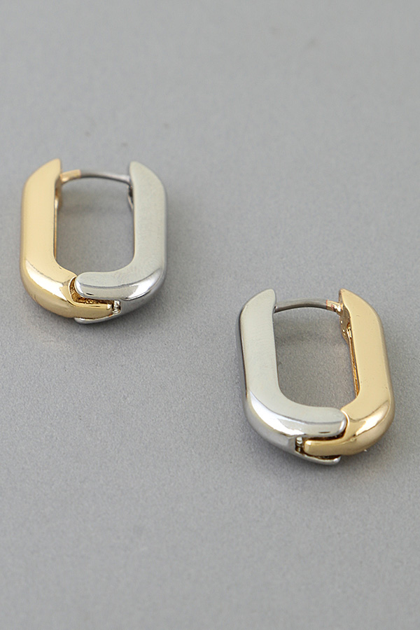 - * Two Toned Link Chain Hoop Earrings