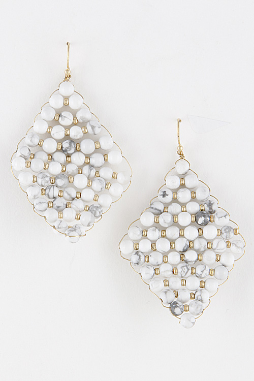 - * Rhombus Shape Beaded Earrings 7BAB6 * 1.5 X 3" approx.