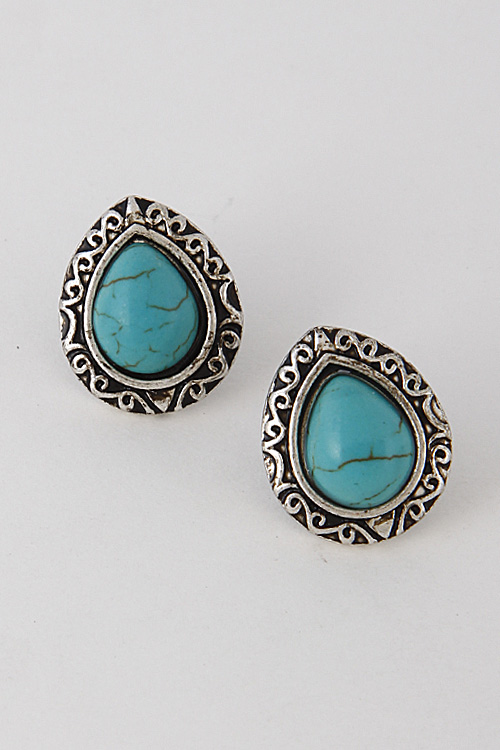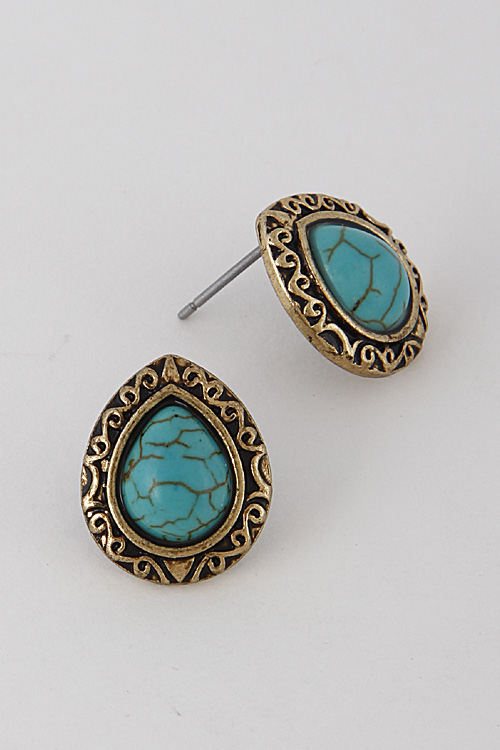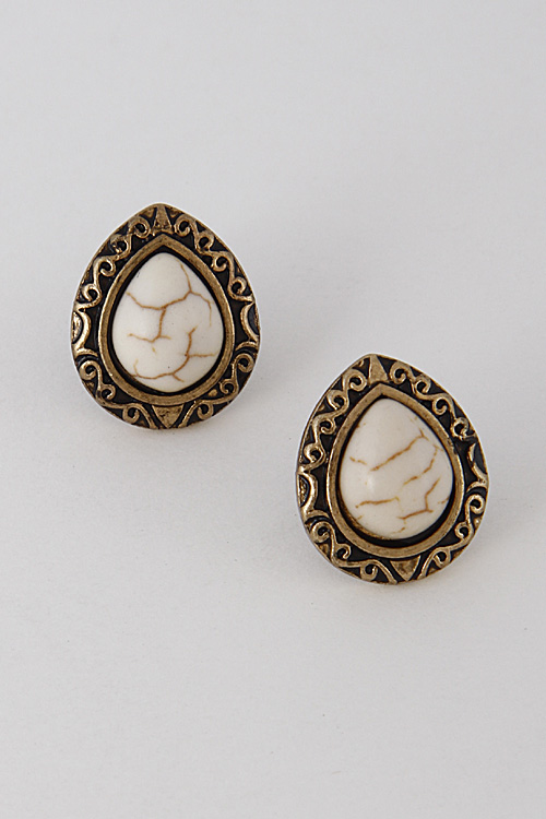 - * Antique Inspired Stone Tear Drop Earrings 6GCA7 * 0.5 x 0.8" approx.
