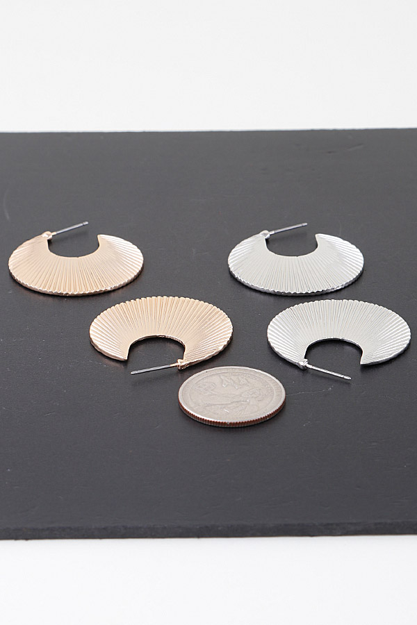 • * Introducing the "Golden Wave Hoops" by H&D Accessories. These stunning flared clam shell hoop earrings are designed to make a statement, effortlessly elevating any outfit. a striking contrast that will catch everyone's eye. Don't miss the chance to add this exquisite piece to your jewelry collection!