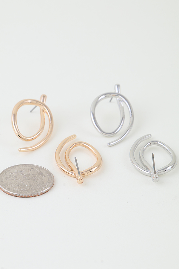 - * These Minimalist Spiral Orbit Stud Earrings from H&D Accessories feature a sleek, kinetic design: two curved metal loops twist into an orbital spiral, creating a lightweight, open silhouette that balances movement and structure. The smooth, rounded wire construction has a polished finish, while the single stud backing anchors the asymmetrical shape for secure, comfortable wear.