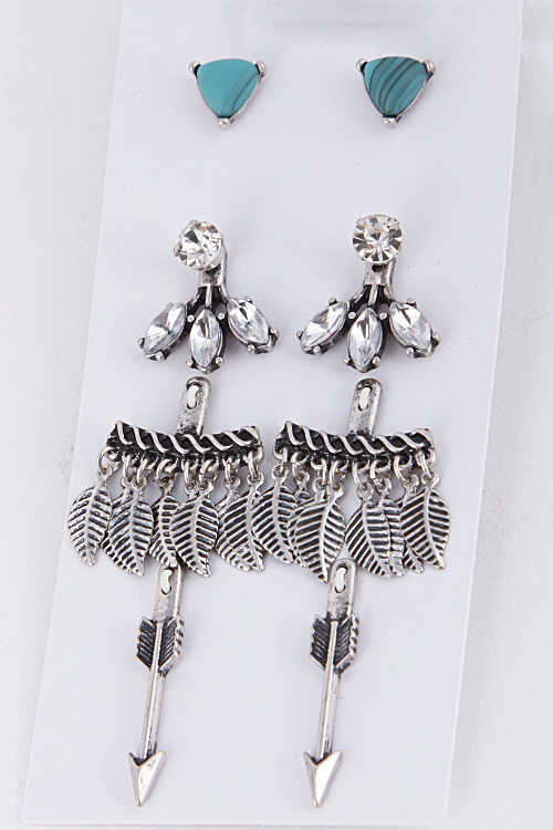 - * Antique Style Rhinestone Attached Set Earring 5GAJ9 * 0.5 x 0.5 / 1 x 1 / 1 x 1 / 1.5 x 0.2" approx.