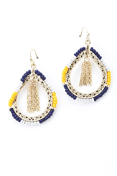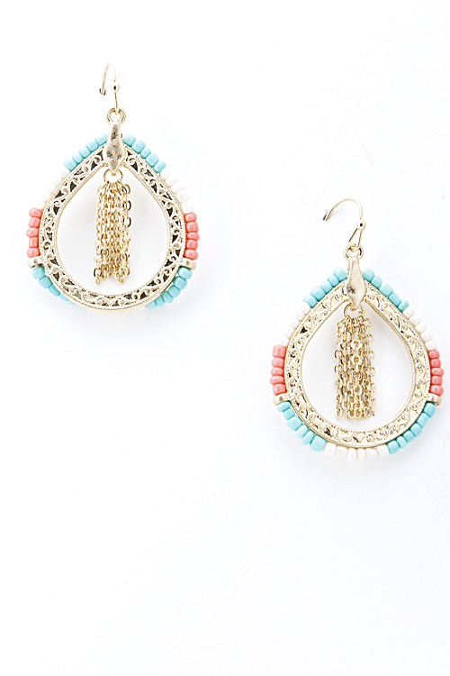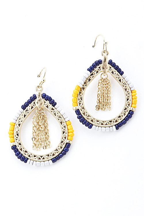 - * Three Tone Bead Rimmed Dangle Earring 5GAG8 * 2 x 1" approx.