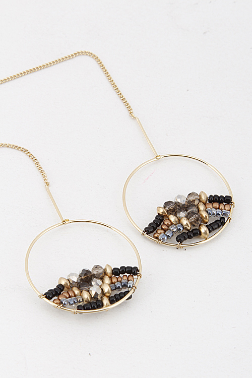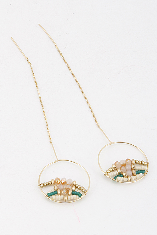 - * Circle Hoop Drop Earrings with Bead Detail 5JBC4 * 5.5" approx.