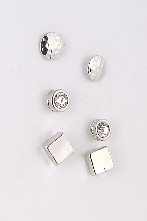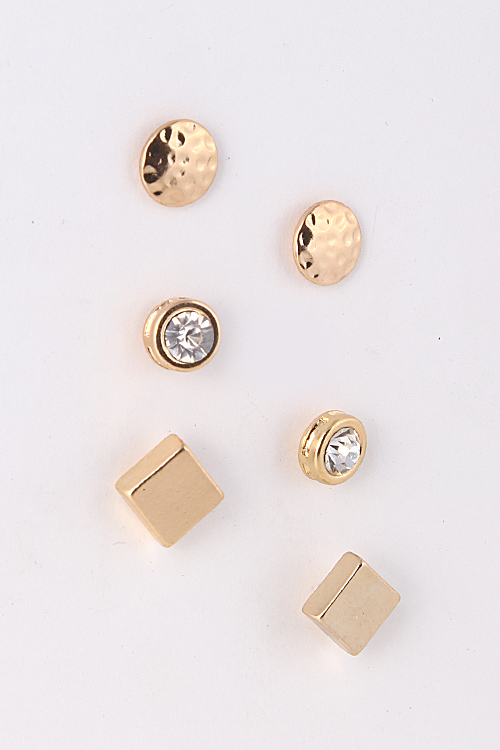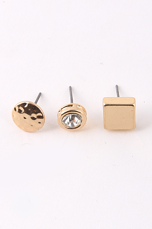 - * Simple Circle Square Rhinestone Stud Earring 5ABG9 * .5 x .5/ .3 x .3/ .5 x .5" approx.