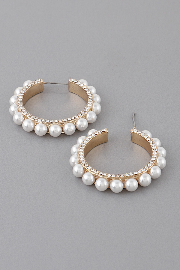 • * Jewel Lined Pearl Hoop Earrings