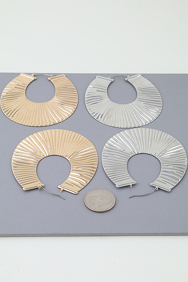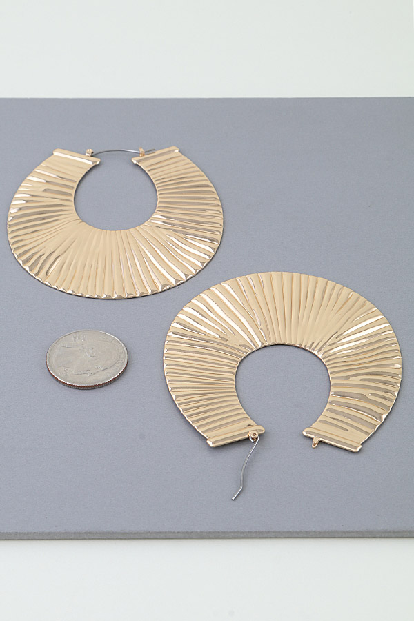 - * Modern Wide Crescent Hoop Earrings from H&D Accessories: These feature a bold, wide crescent silhouette with a textured, radiating-stripe pattern that adds dimensional shine. Designed with a slim wire closure for secure wear, they balance statement-making style with lightweight comfort—ideal for elevating weekend looks or adding edge to evening outfits. A contemporary staple that merges striking design with everyday wearability.