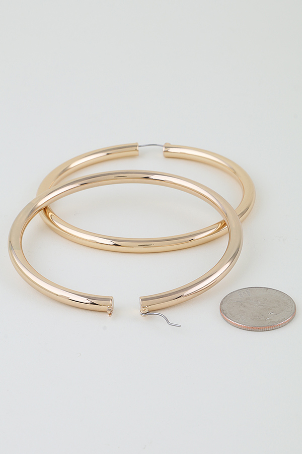 - * This is a pair of Multi Shiny Hoop Earrings from H&D Accessories. They feature two large, circular hoop structures. The hoops have a smooth, polished surface that gives off a shiny appearance. Each earring has a simple yet bold design, with an open - ended structure and a small metal piece for wearing. The overall look is sleek and eye - catching, perfect for adding a touch of style to any outfit.