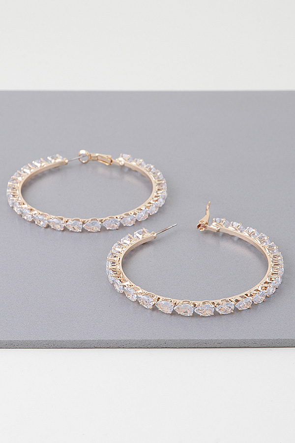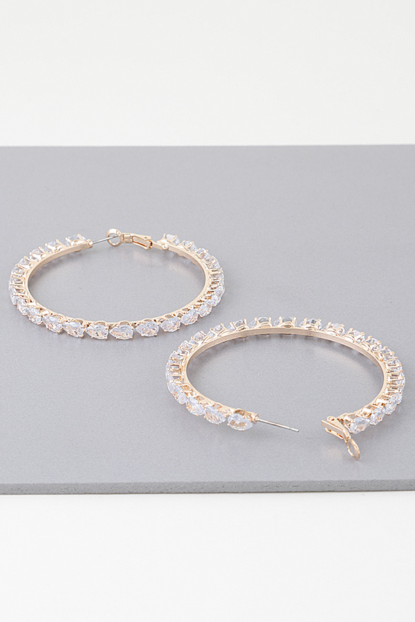 - * Introducing the "Gilded Elegance Hoops" – a stunning pair of gold hoop earrings that effortlessly elevate any outfit. With their teardrop design and exquisite bejeweled accents, these earrings by H&D Accessories are the perfect blend of sophistication and style. Adorn your ears with a touch of luxury that shines as brightly as you do.