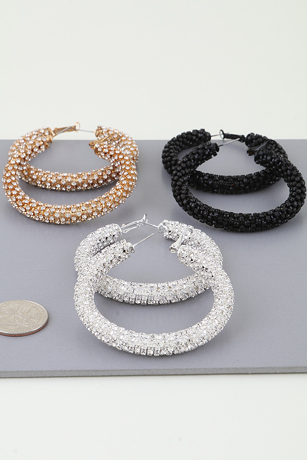 - * Bejeweled Tube Hoop Earrings from H&D Accessories feature a bold tube - shaped hoop design densely adorned with sparkling jewels. The substantial size and intricate bejeweling create a glamorous, eye - catching look. Perfect for adding a touch of luxury to evening gowns at formal events or for elevating casual outfits when going out with friends.
