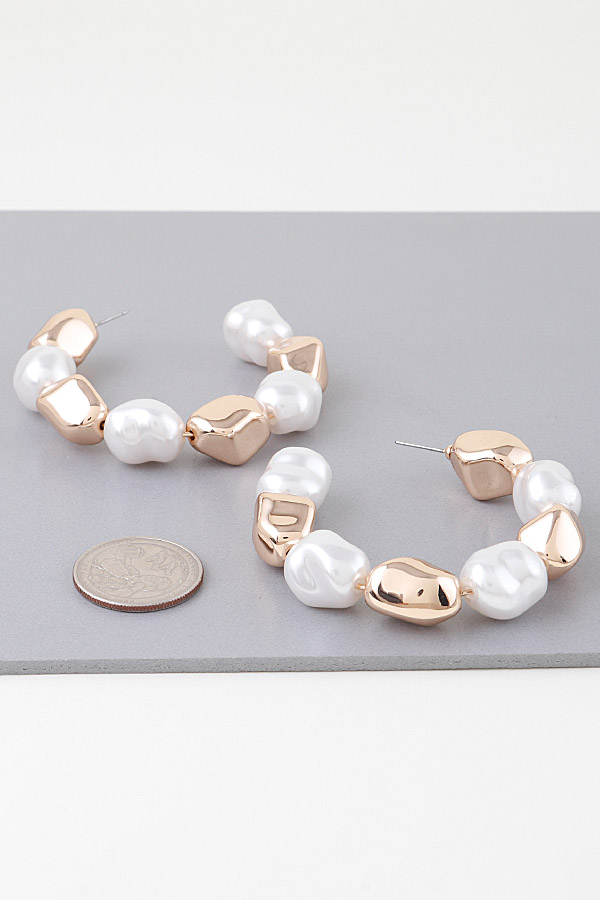 - * Discover the "Shiny N Pearl Stone Hoop Earrings" – where timeless beauty meets modern design. These exquisite gold and white pearl earrings are crafted to catch the light and turn heads. Whether you're dressing up for a special occasion or adding a touch of glamour to your everyday look, the Radiant Pearl Elegance Hoops are the perfect choice for any fashion-forward individual.
