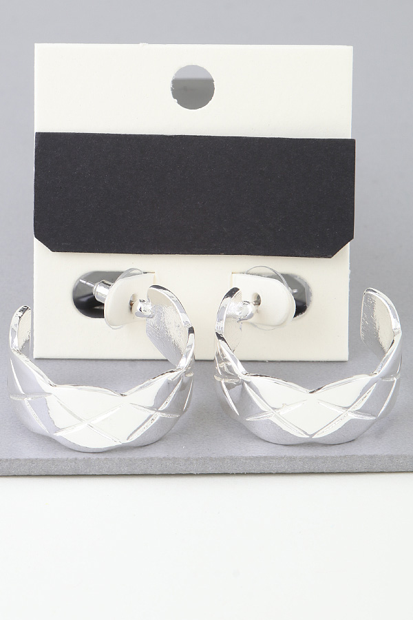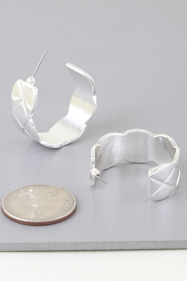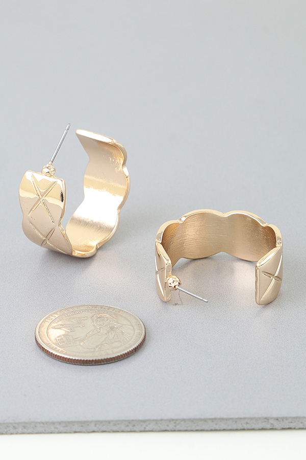 - * Diamond Quilt Cut Gold Hoop Earrings