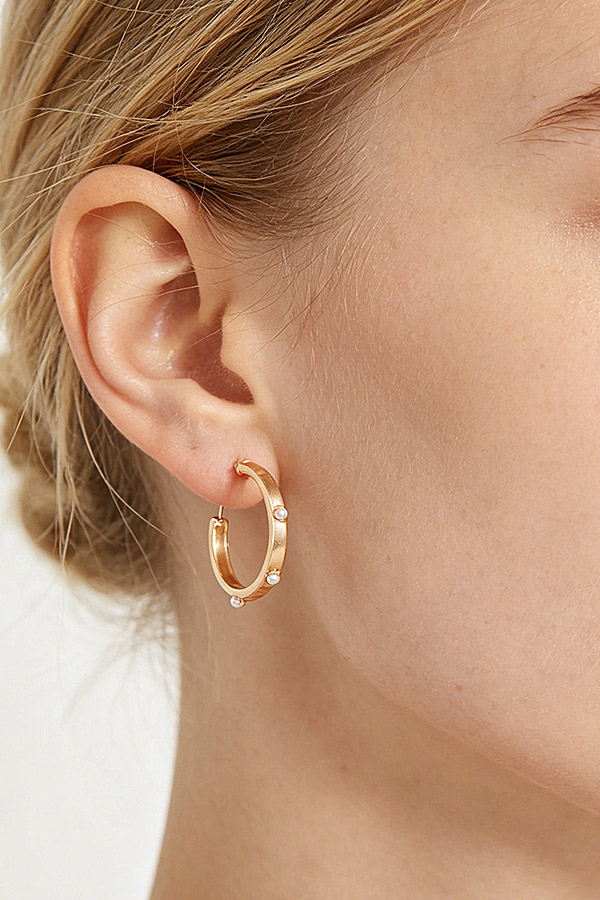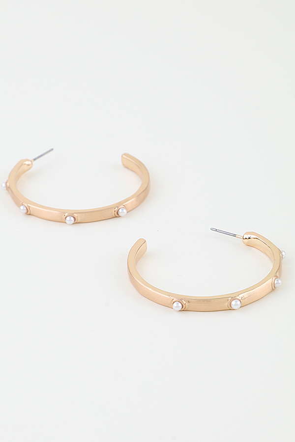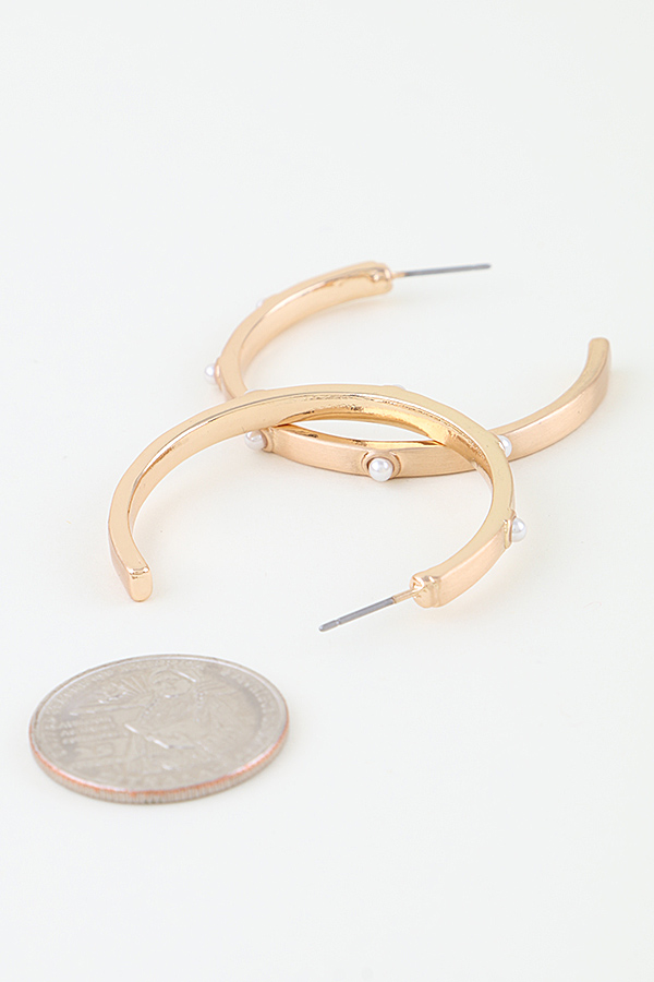 - * These Pearl Embedded Hoop Earrings from H&D Accessories feature a sleek, open-cuff hoop design with delicate, lustrous pearls embedded along the warm metallic band, blending minimalist elegance with timeless charm. Ideal for brunch gatherings, office ensembles, or evening soirees, they add a soft, refined glow to any look without overwhelming the wearer. The lightweight open structure ensures comfortable all-day wear, making them a versatile staple for elevating both casual and formal styling with understated luxury.