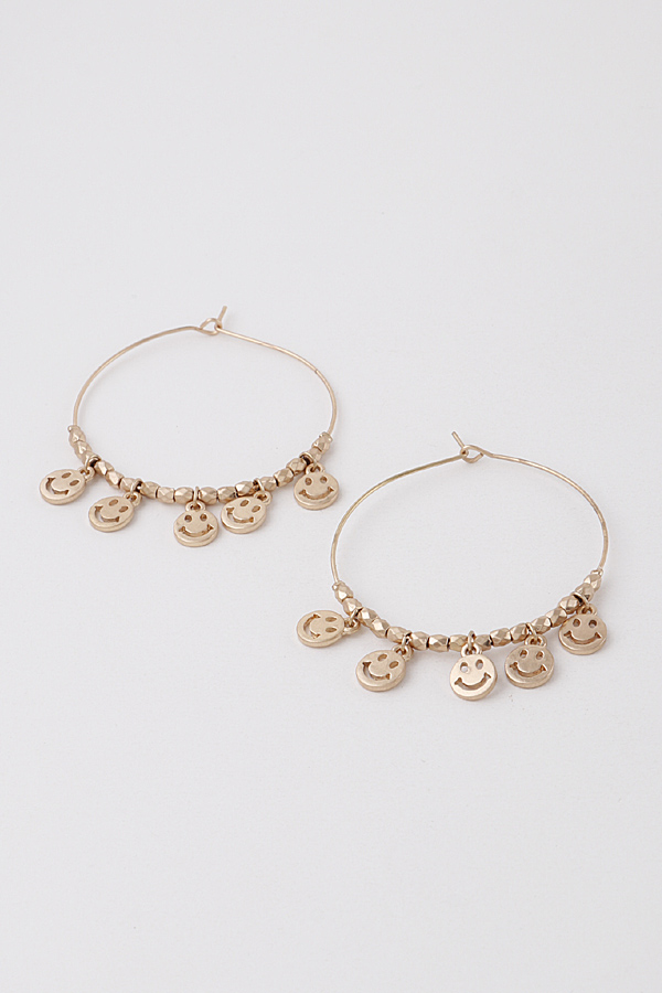 - * Smiley Face Charms Hoop Earrings