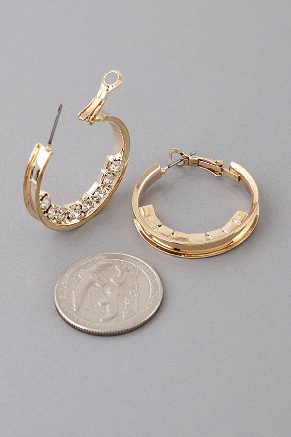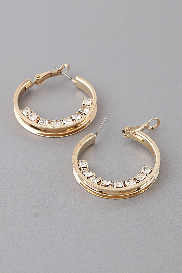 - * Rhinestone Lined Hoop Earrings
