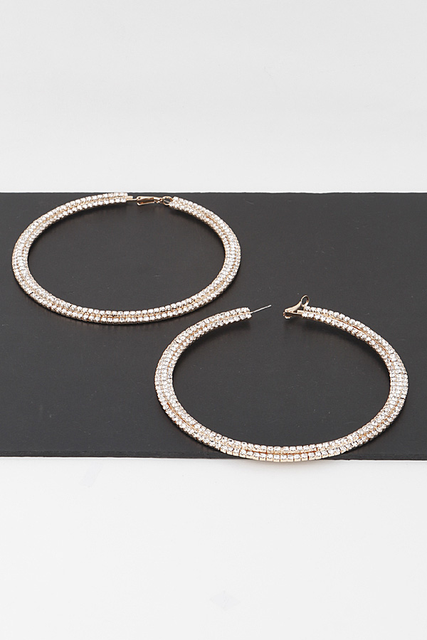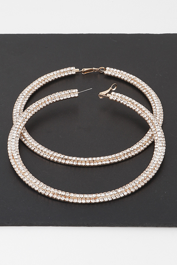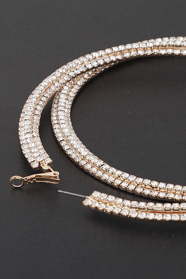 - * Triple Rhinestone Lined Hoop Earrings