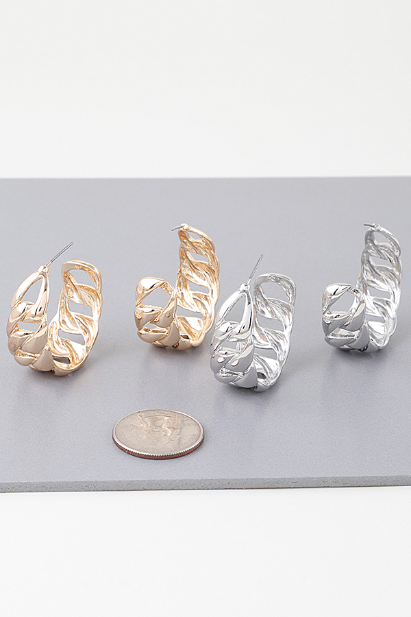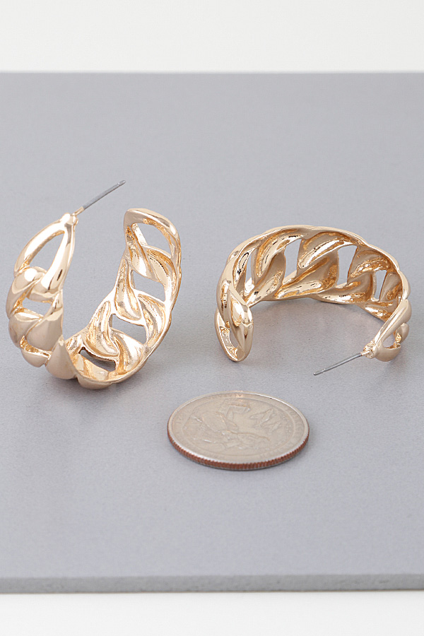 - * Introducing the "Curb Braid Chain Hoop" – a stunning pair earrings that effortlessly elevate any outfit. These earrings are not just accessories; they are a statement of elegance and style. Perfect for both casual outings and formal events, the unique curb braid design adds a touch of sophistication that will make you stand out. Don’t miss the chance to enhance your jewelry collection with these exquisite hoops!
