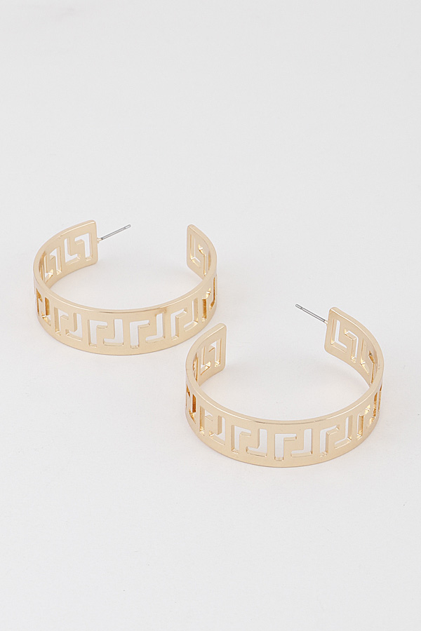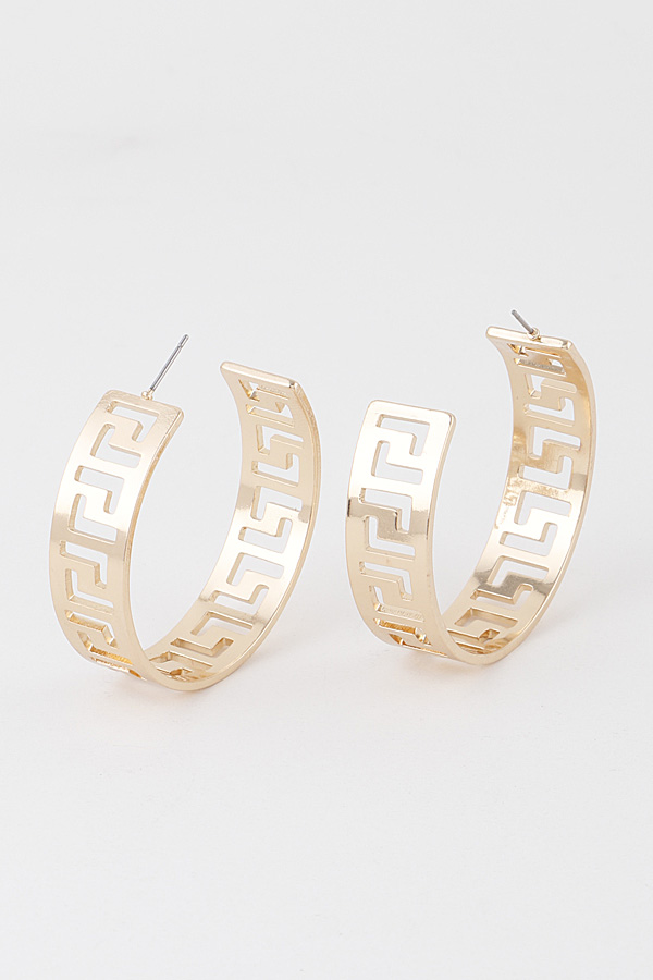 - * Wide Greek Key Hoop Earrings