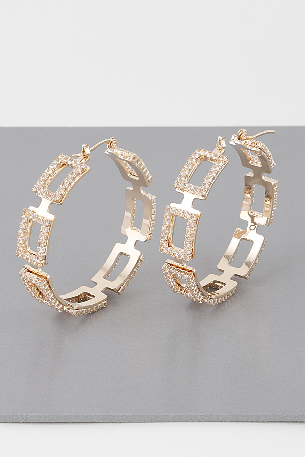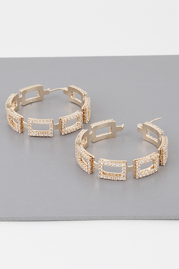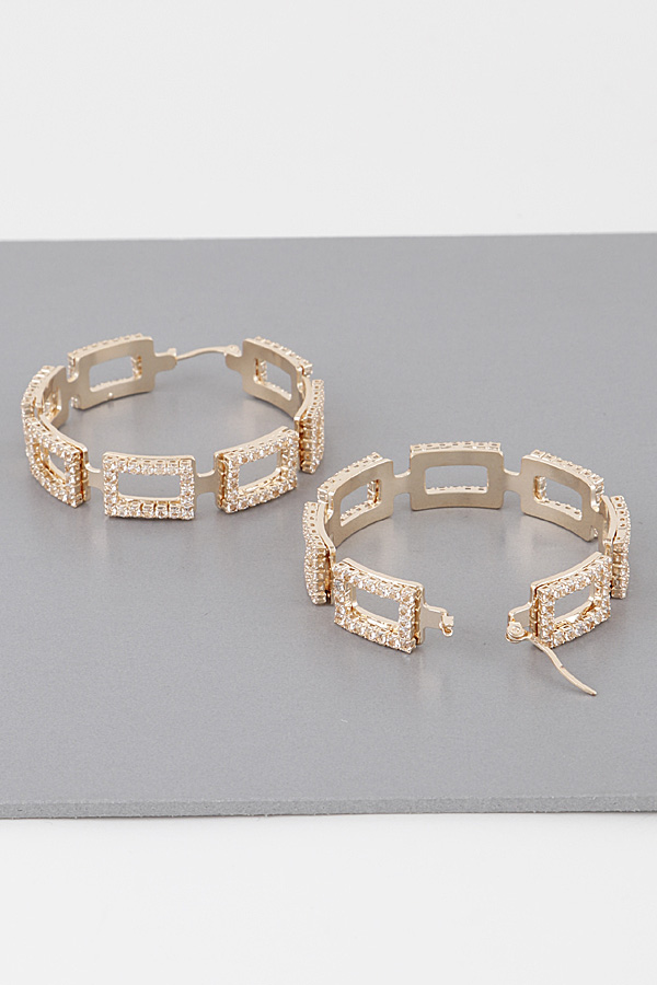 - * Jeweled Link Chain Hoop Earrings