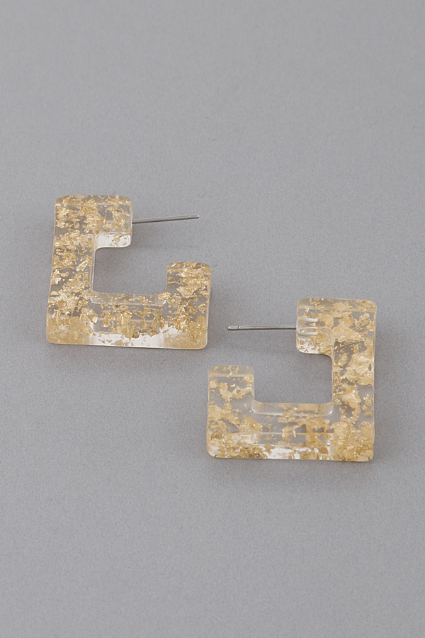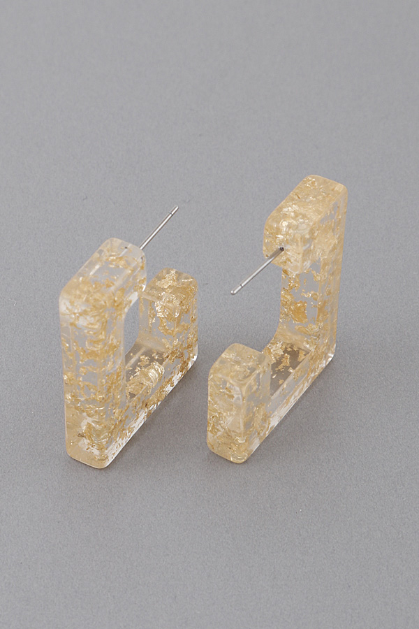 - * Clear Glitter Block Hoop Earrings