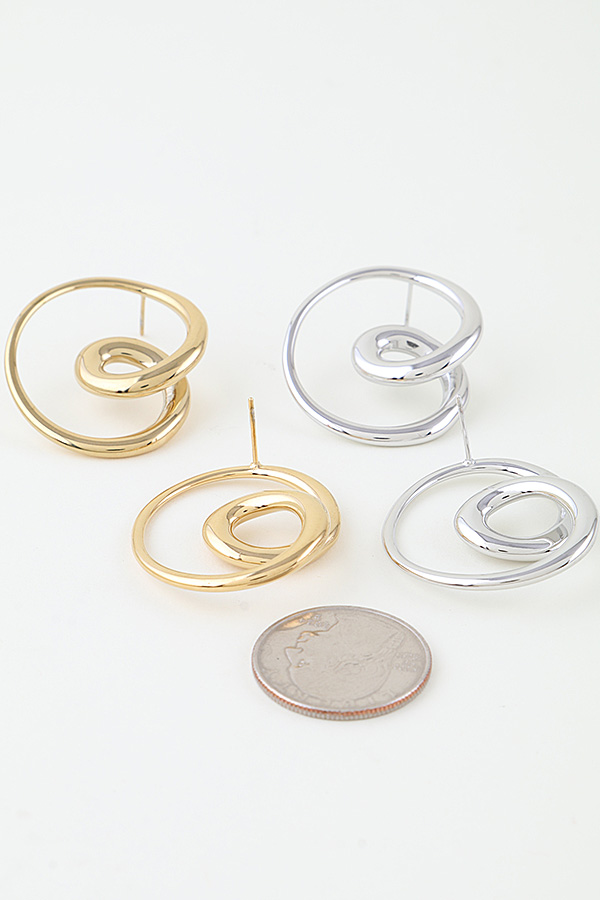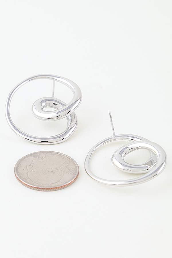 • * These Shiny Twirl Loop Stud Earrings from H&D Accessories feature a dynamic, interlocked spiral design: two smooth, rounded loops twist into a overlapping, twirled silhouette. The polished finish amplifies the sleek, fluid curves of the intertwined loops, giving the stud style a bold, dimensional profile. The compact yet eye-catching structure merges modern movement with minimalist shine, defining a distinctive take on statement stud styling.