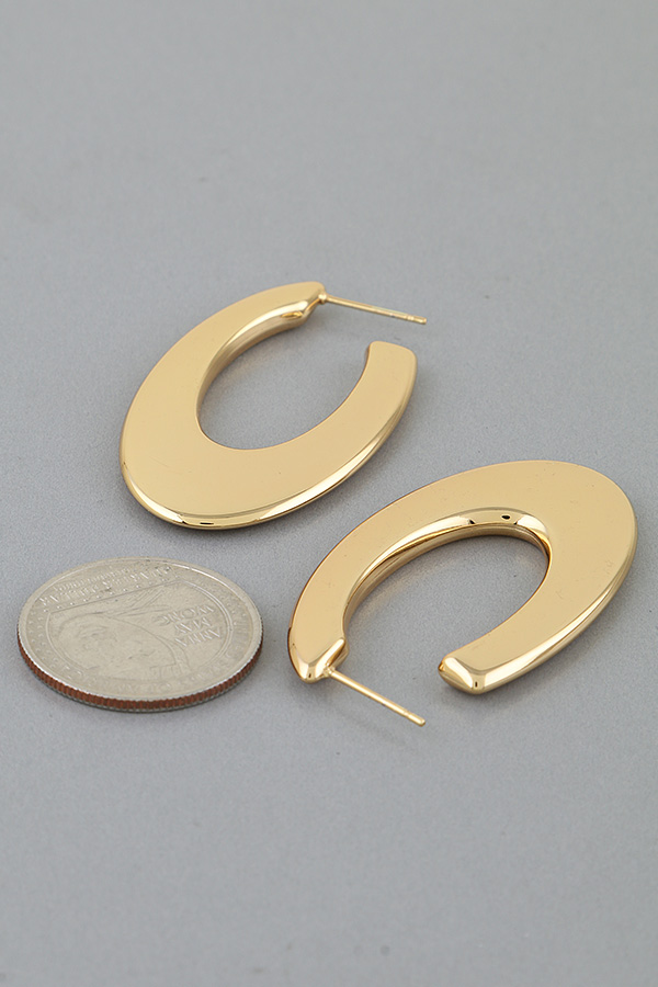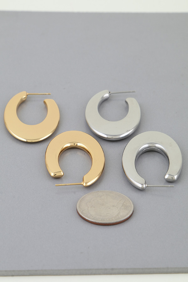 - * These are Shiny Horseshoe Hoop Earrings from H&D Accessories. They feature a sleek horseshoe - shaped design with a polished, shiny finish. The earrings are crafted with attention to detail, offering a modern and stylish look. Their size is presented relative to a coin for scale, highlighting their bold presence.
