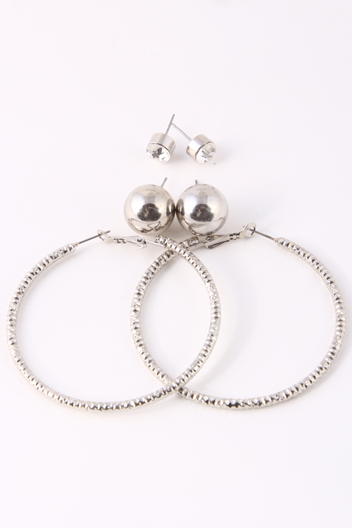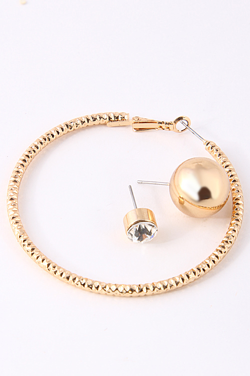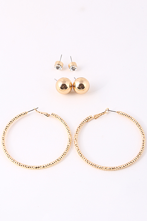 - * Double Stud Textured Hoop Set Earring 5ABG1 * .4 x .4 / .75 x .75 / 2.25 x 2.25" approx.