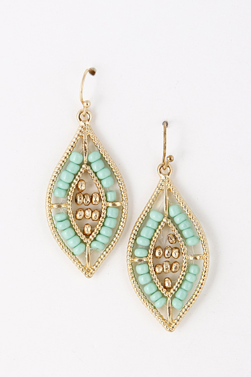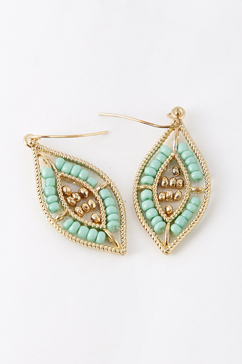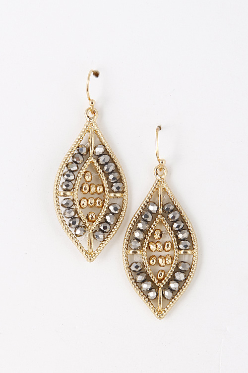 - * Two Tone Oval Shape Beaded Dangle Earring 5FCC5 * .75 x 1.5" approx.