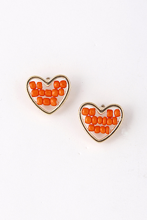 - * Bead Filled Heart Stud Earring 5EBJ2 * 1 x 0.75" approx.