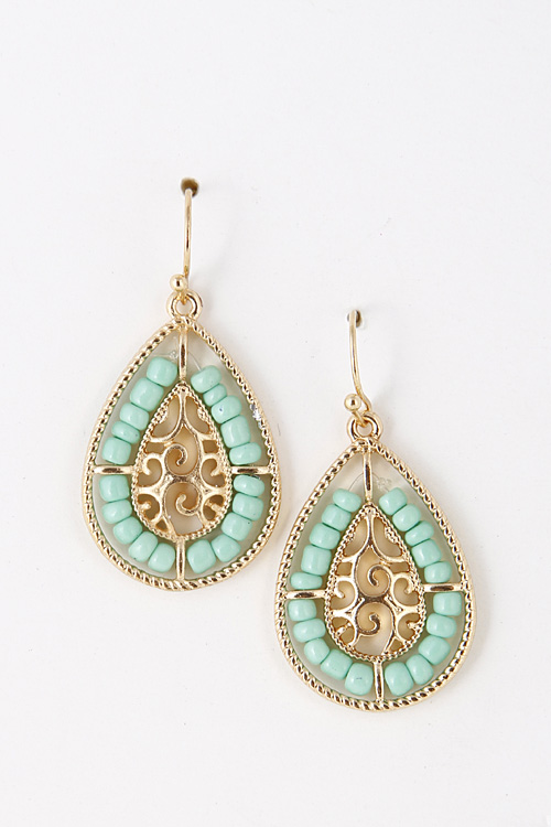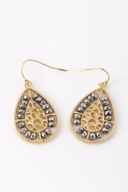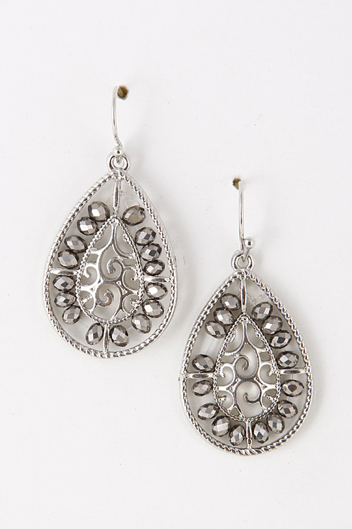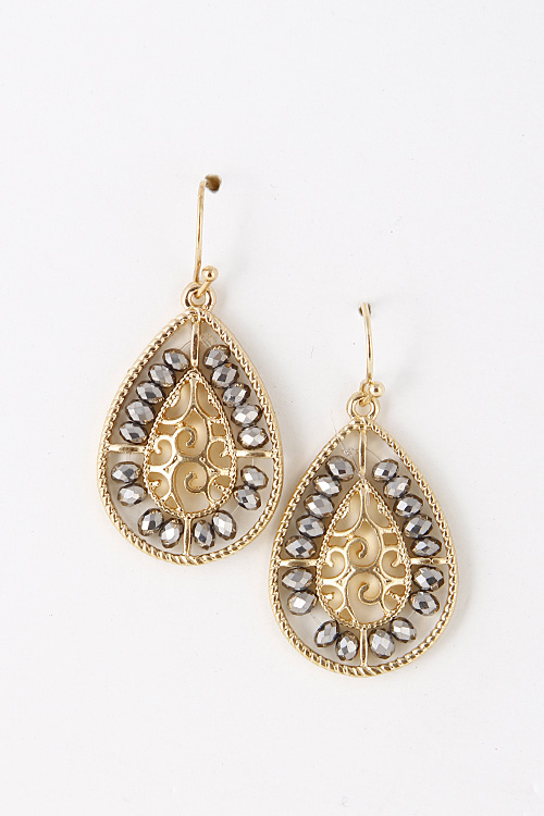 - * Filigree Cutout Center Bead Surrounded Dangle Earring 5FCC5 * 1.5 x 2.2" approx.