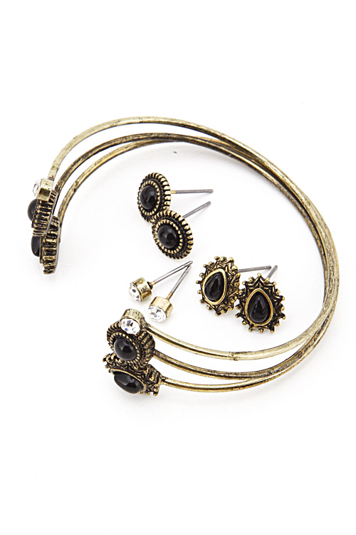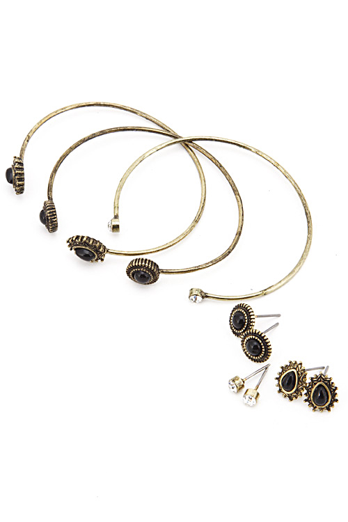 • * Black Bead Metal Earring and Bracelet 5FDA4 * 2 x 2.5" approx.