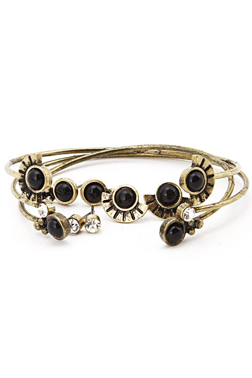 - * Black Half Moon Bead Earring And Bracelet Set 5FDA4 * 2 x 2.25 approx.