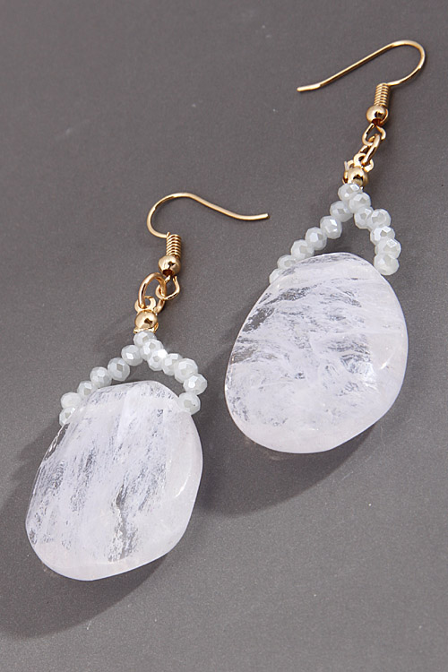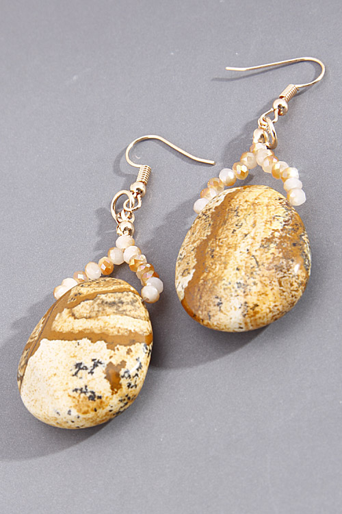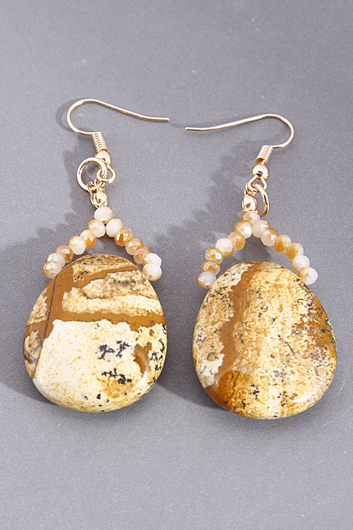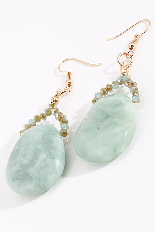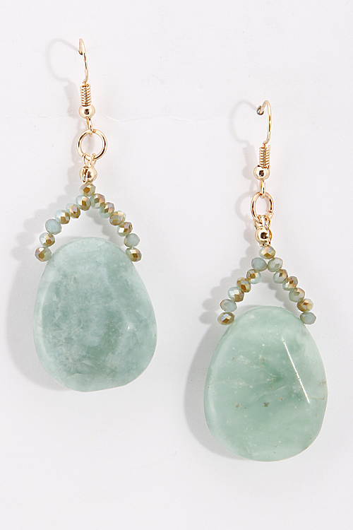 - *Tear Drop Stone Hook Earring With Bead Attachment 6BAJ9 *0.9 X 2.4" approx.