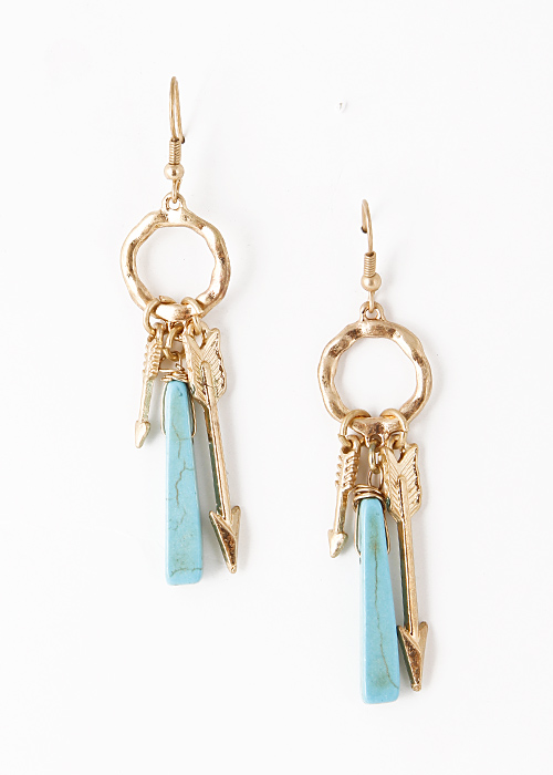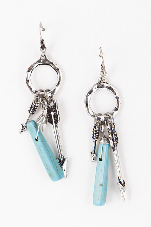 - * Antique Stone Arrow Charm Dangle Earring 5FAJ8 * .5 x 2.25" approx.