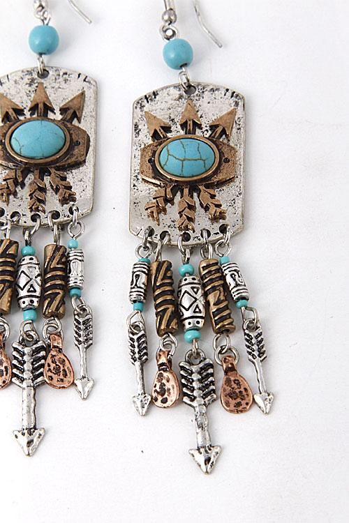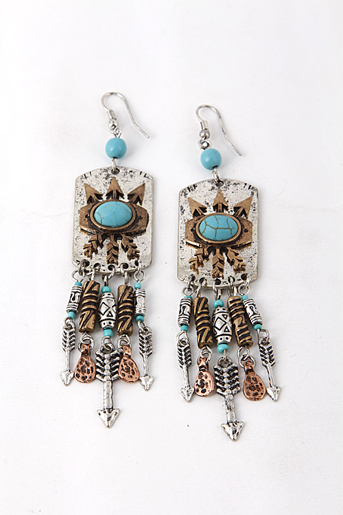 - * Antique Arrow Plate Charm Dangle Earring 5FBI13 * .75 x 1.4 x 1.25" approx.