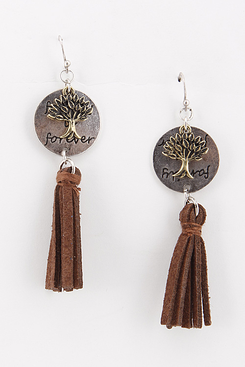 - *Forever Hook Earring With Tree And Tassel 6BAH10 *0.5 X 3" approx.